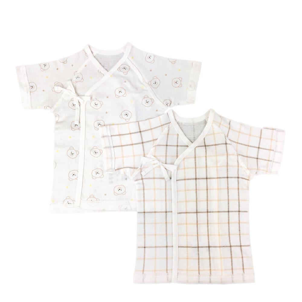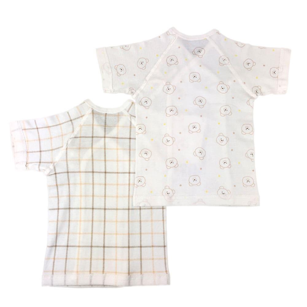 短肌着 熊×チェック柄 2枚組(ホワイト×50-60cm) ベビーザらス限定