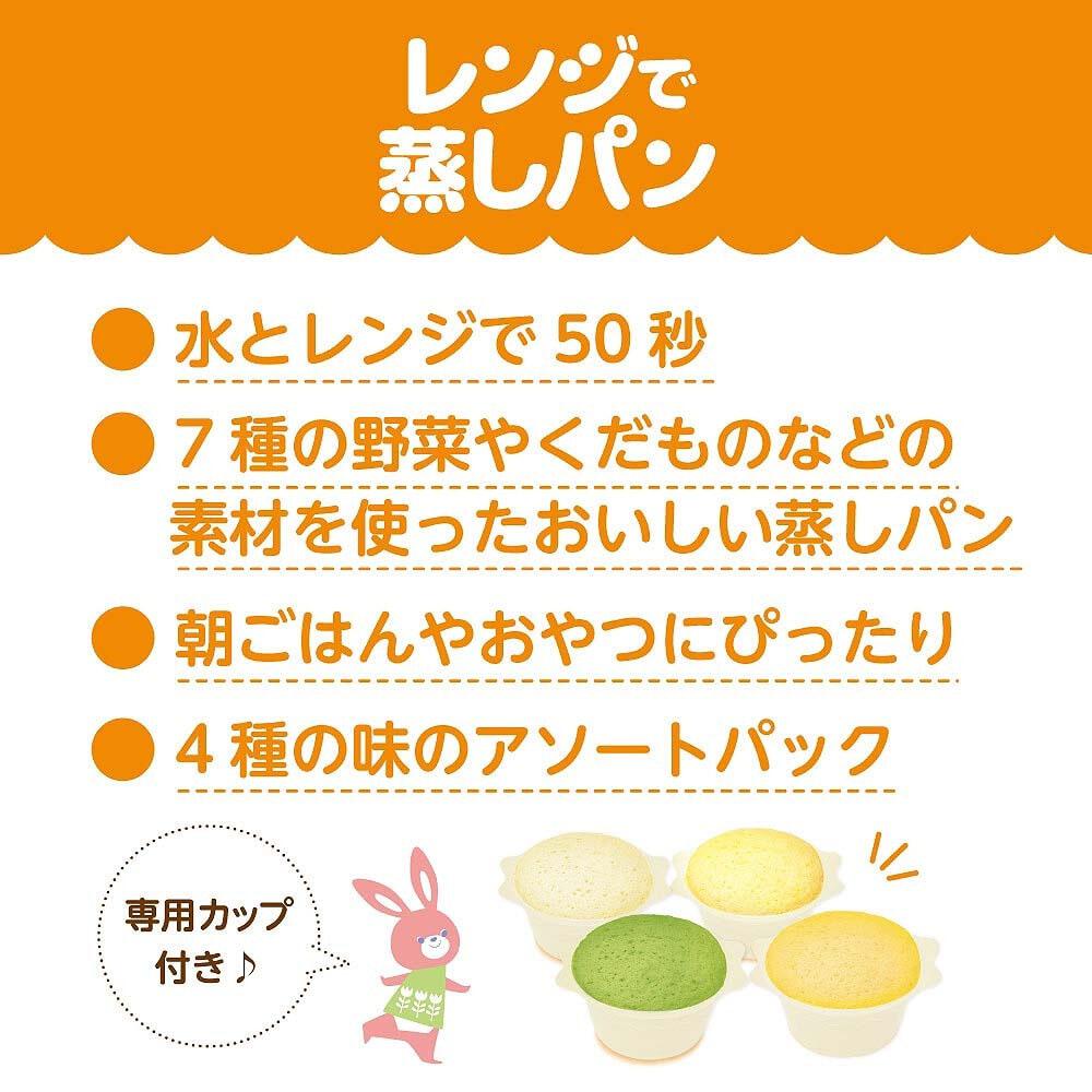 水とレンジでかんたん!4種類の味が楽しめる、蒸しパンです。