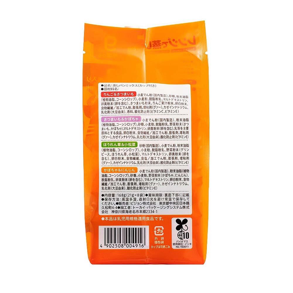 お子様に与えたい野菜や果物などの素材を使ったおいしい蒸しパンです。