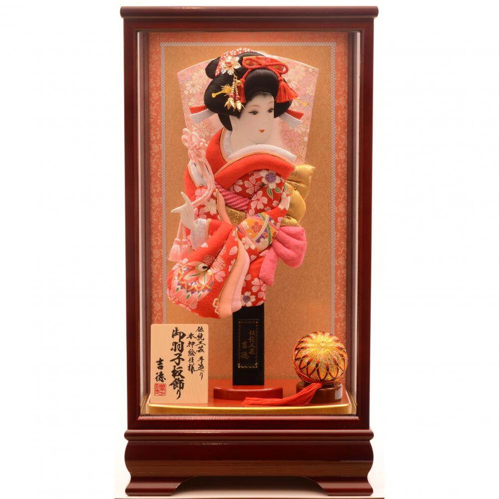 <全国無料配送>初節句のお祝いに。トイザらス・ベビーザらスがおすすめする「ワイン塗戸付きケース「振袖」13号」の羽子板です。