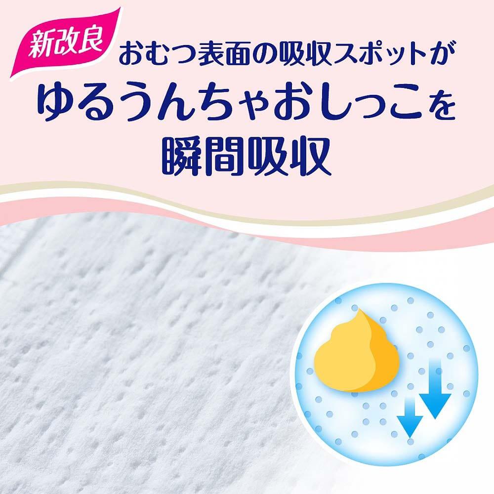 ゆるゆるうんちのスピード吸収プラス。穴あき吸収シートがゆるゆるうんちを素早く吸い込み、うんちのはりつきを軽減します。