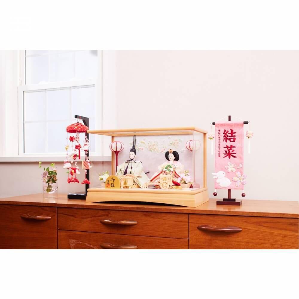 <全国無料配送>初節句のお祝いに。トイザらス・ベビーザらスがおすすめする「ケース親王飾り 桜リボン木目調パノラマアクリル」の雛人形です。
