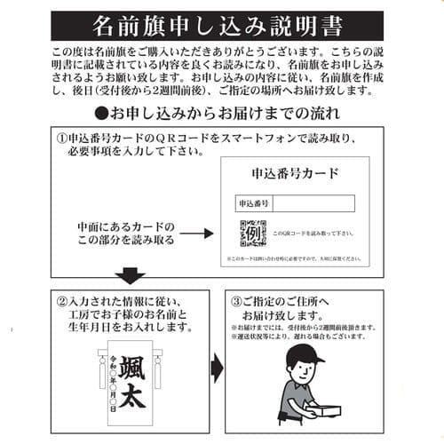 3. 送信後、2週間前後で名前旗をお届けします。お日にちに余裕を持ったご注文をおすすめします。