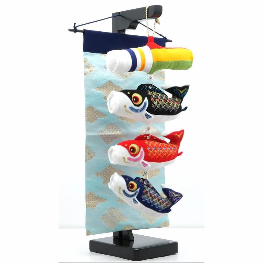 吹流しに黒・赤・青の鯉を揃えた、ポップで可愛らしい室内鯉のぼりです。