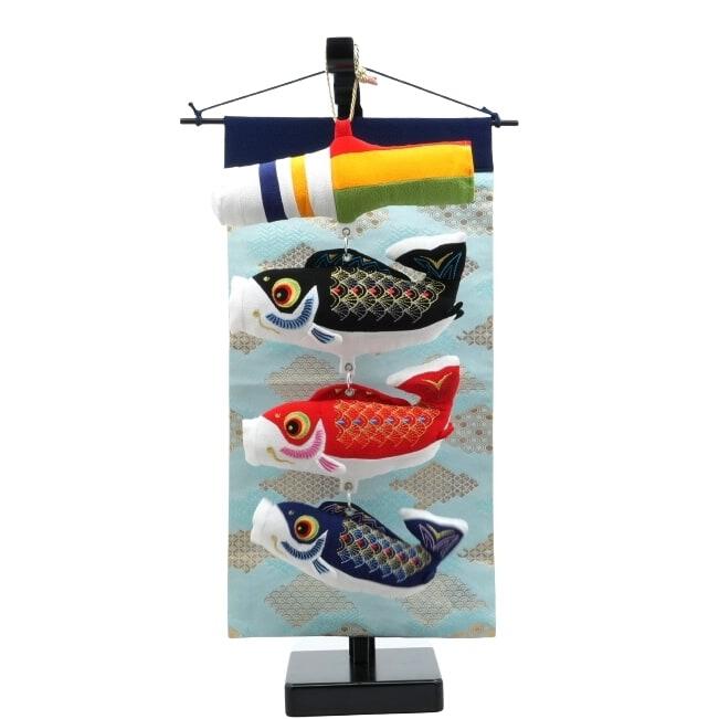 <セット内容>吹き流し1点・鯉3点(黒・赤・青)・タペストリー1枚・飾り用スタンド(組み立て式)1点