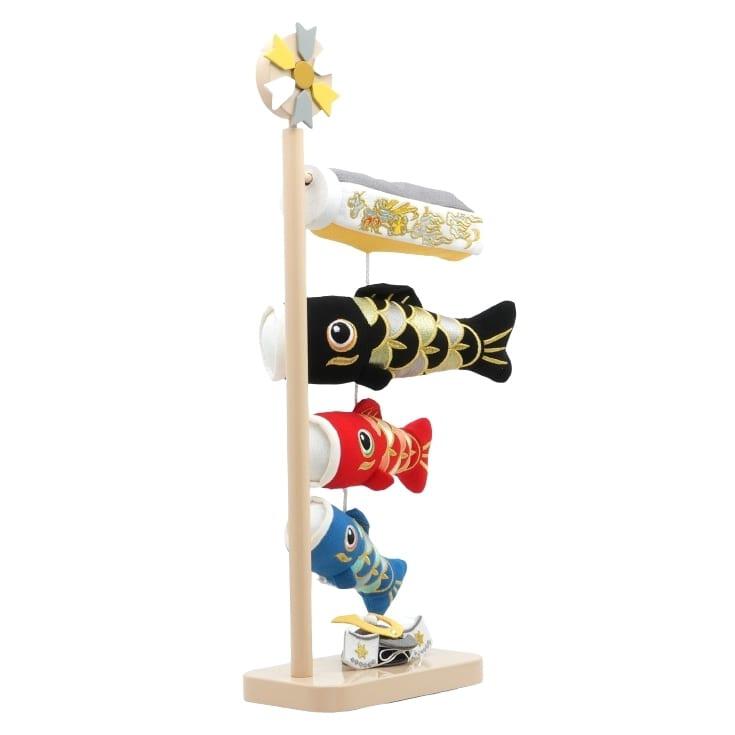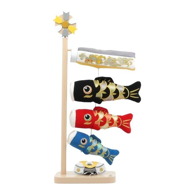 吹流しに黒・赤・青の鯉を揃えた、可愛らしい室内鯉のぼりです。