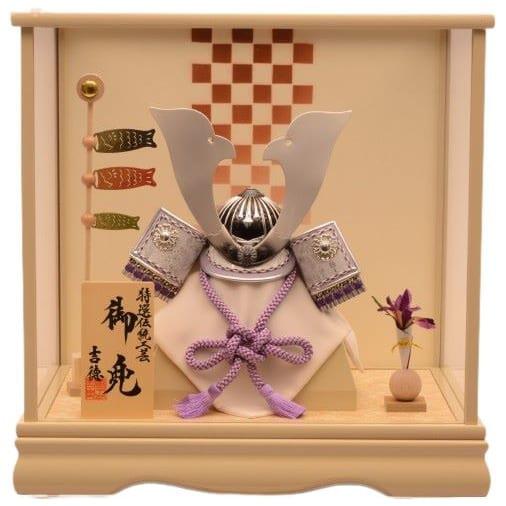 <セット内容>兜1点、ガラスケース1点、鯉のぼり1点、菖蒲1点、木札1点