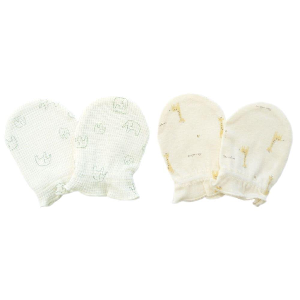 オーガニック ミトン2枚組 キリン×ぞう(ホワイト×フリー) ベビーザらス限定