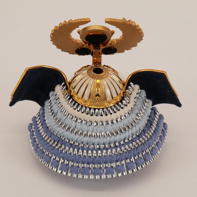 兜:銀小札緑白水色糸縅(ぎんこざねみどりしろみずいろいとおどし)