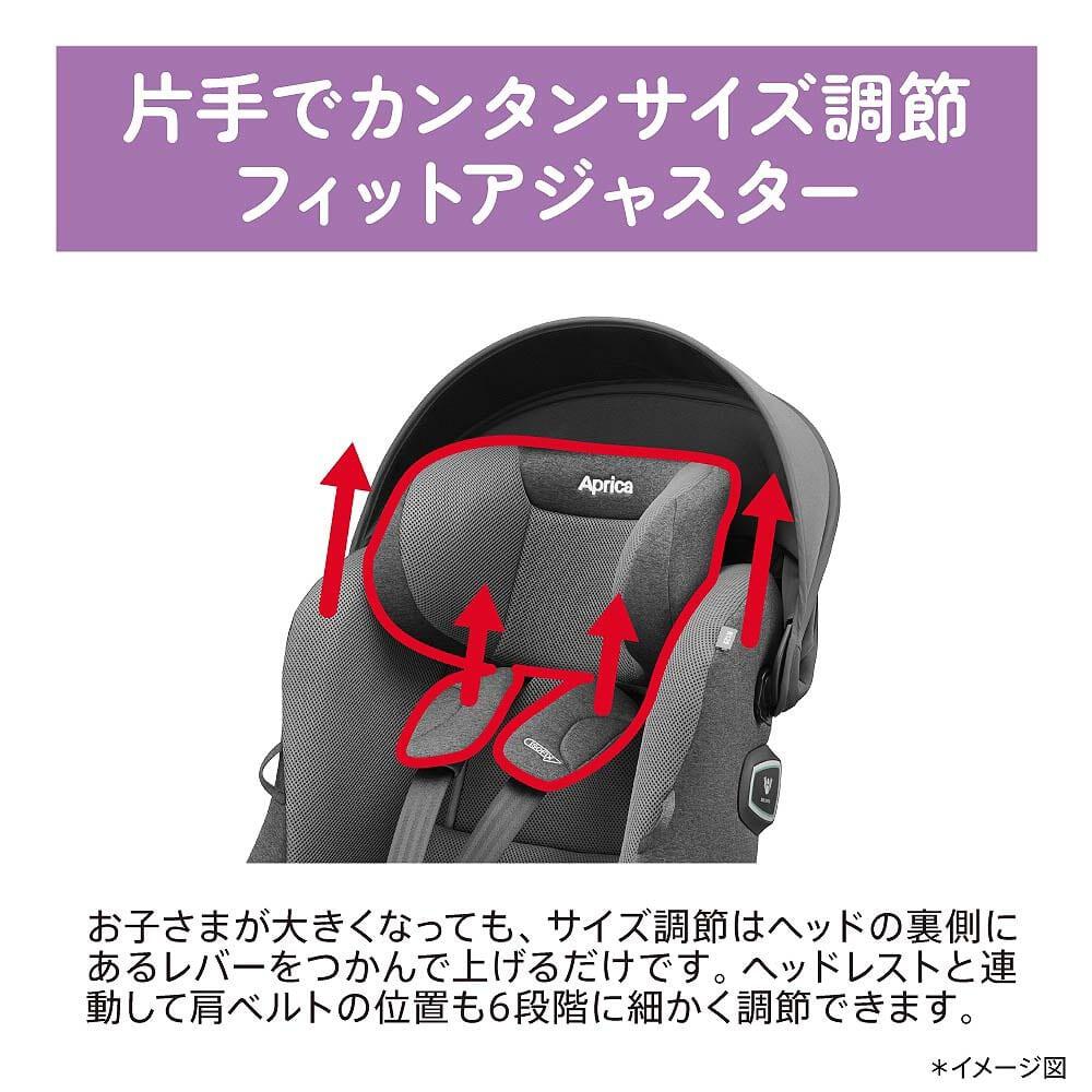 ●ヘッドレストと連動して肩ベルトの位置も6段階に細かく調節できます。