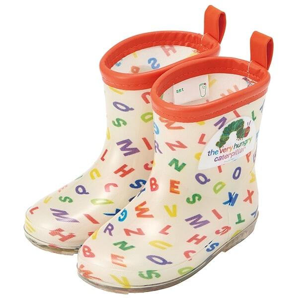 レインブーツ 14cm はらぺこあおむし アルファベッド (ベージュ×14cm)