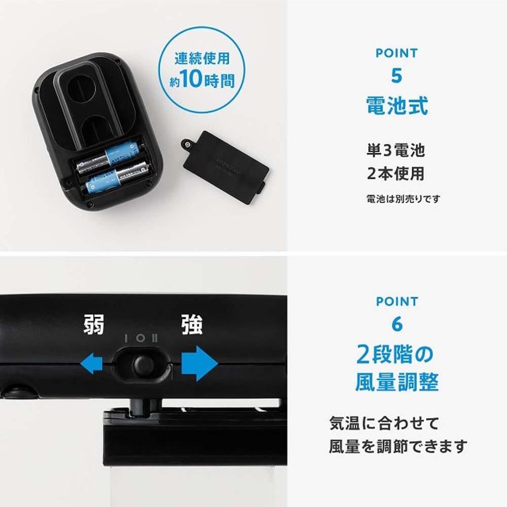 風量を2段階で調節可能、卓上扇風機や首下げ扇風機としてもマルチに使えます。