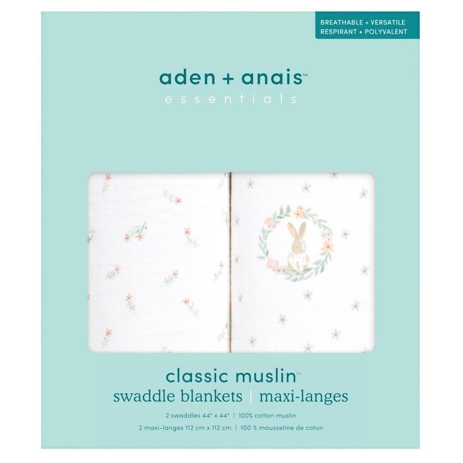 aden + anais エイデンアンドアネイ エッセンシャルズ スワドル2枚組 ブラッシングバニーズ(ピンク×フリー)