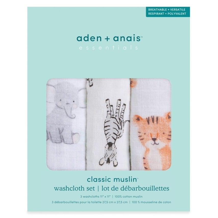 aden + anais エイデンアンドアネイ エッセンシャルズ ウォッシュクロス 3枚組 サファリベイブス