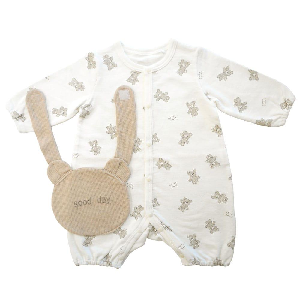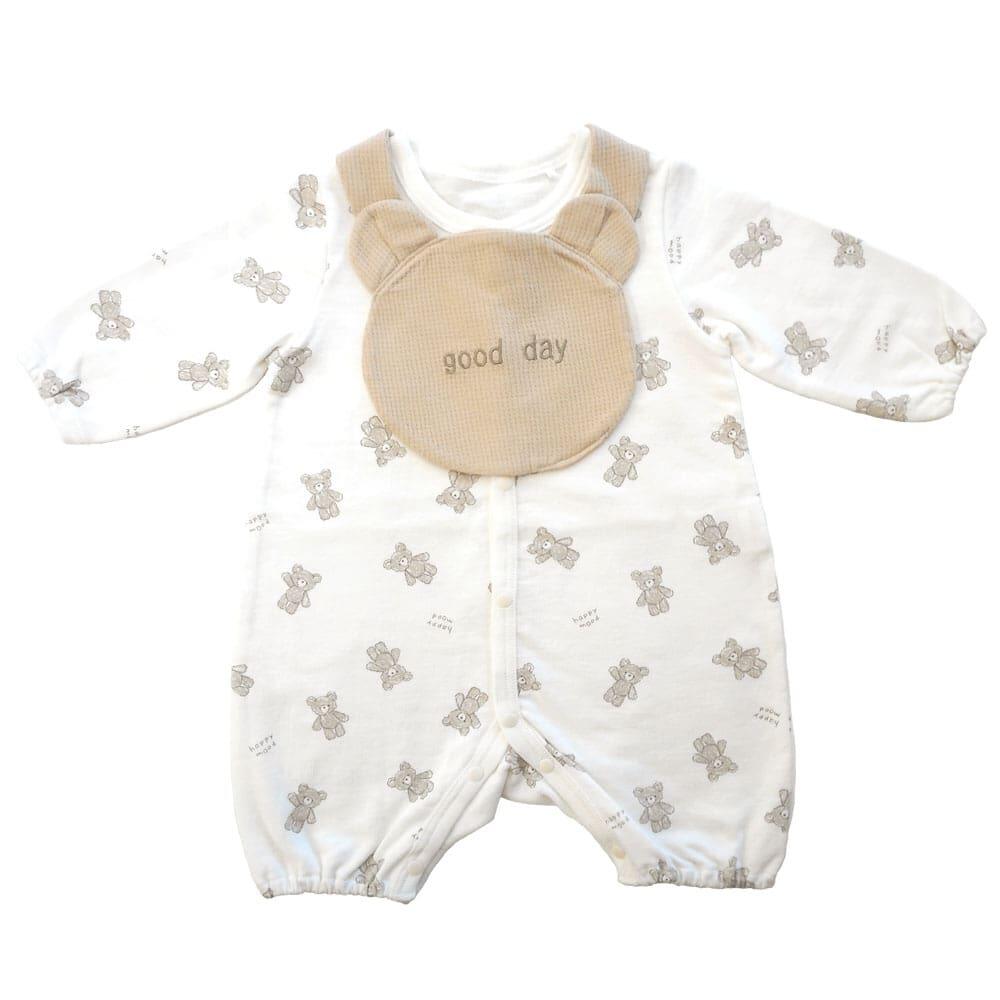 長袖ミニオール スタイ付き くま(ライトベージュ×50-60cm)