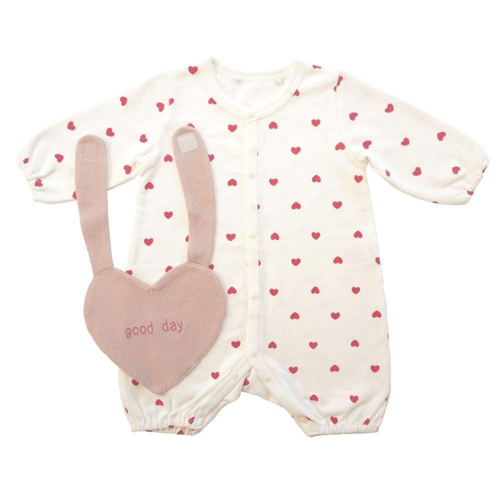 長袖ミニオール スタイ付き ハート(ピンク×50-60cm) ベビーザらス限定