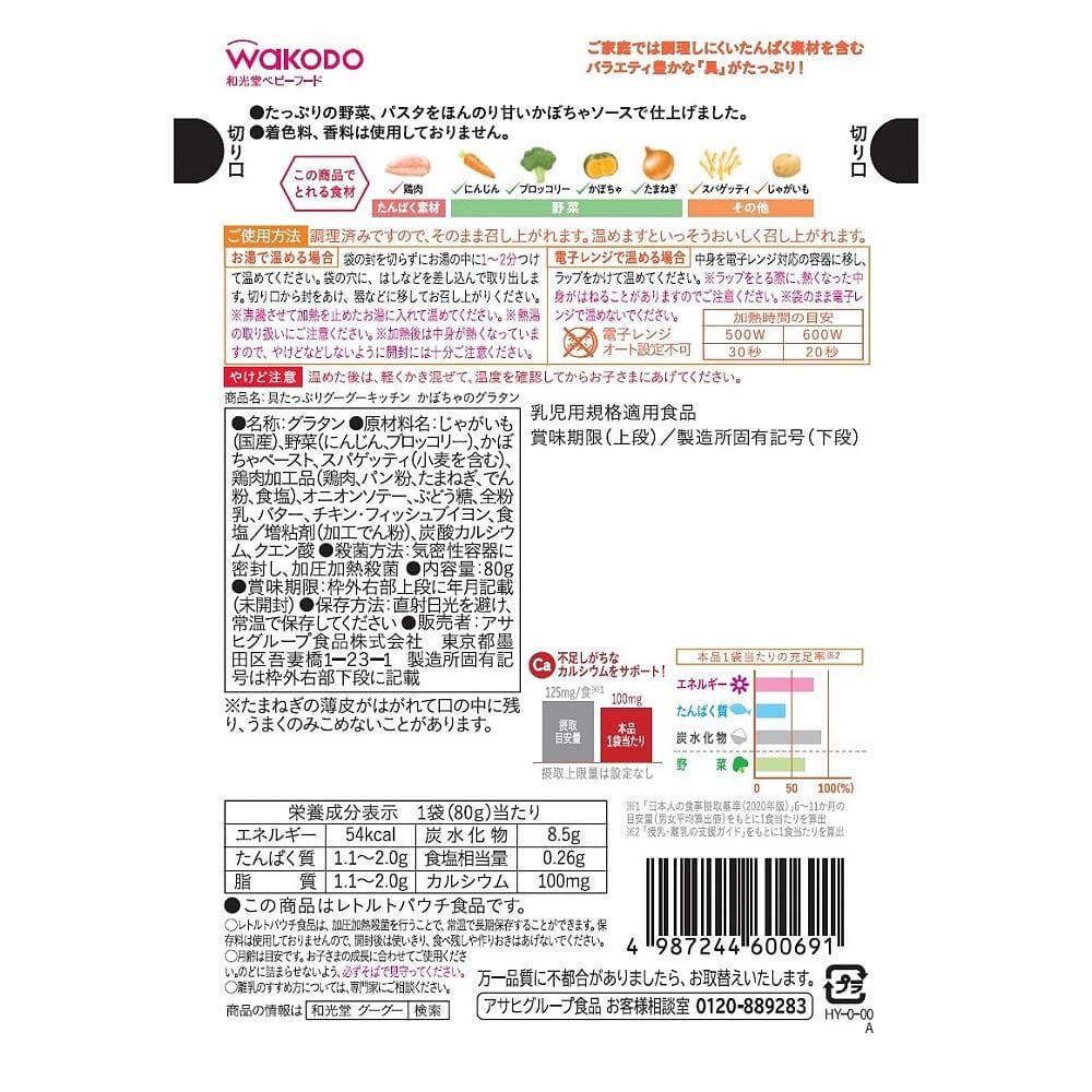 じゃがいも(国産)、野菜(にんじん、ブロッコリー)、かぼちゃペースト、スパゲッティ(小麦を含む)、鶏肉加工品(鶏肉、パン粉、たまねぎ、でん粉、食塩)、オニオンソテー、ぶどう糖、全粉乳、バター、チキン・フィッシュブイヨン、食塩/増粘剤(加工でん粉)、炭酸カルシウム、クエン酸