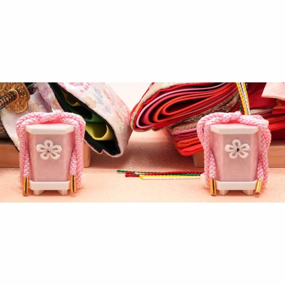 前飾りには可愛らしい桜柄の貝桶を配しました。