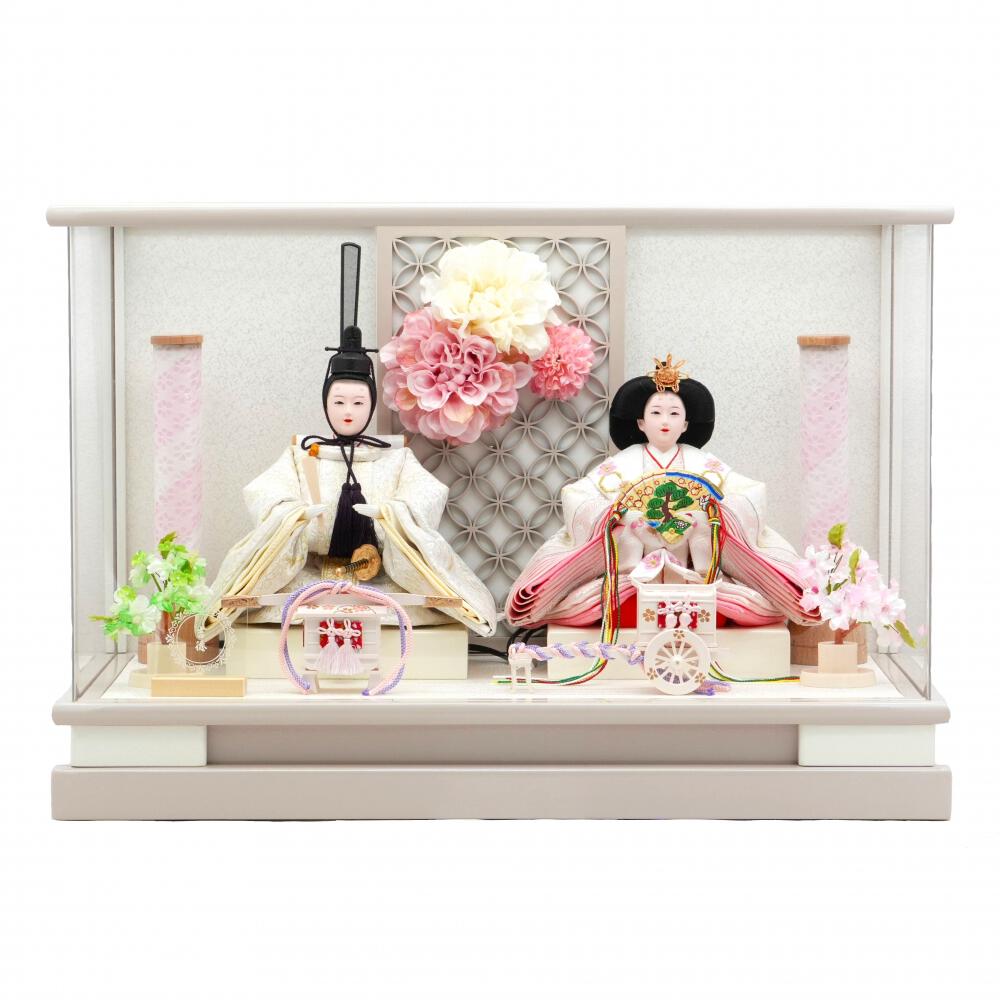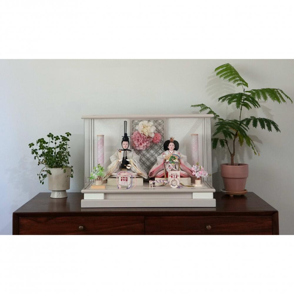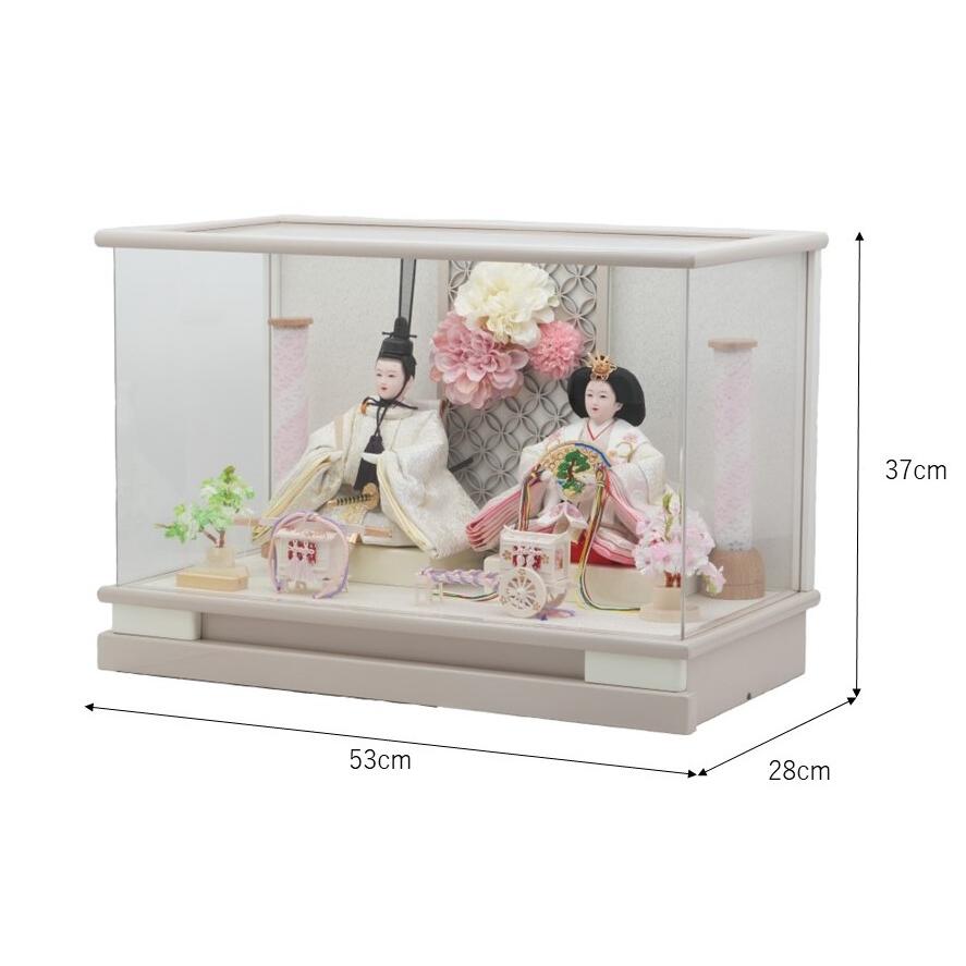 【雛人形】ケース飾り 親王飾り「花飾りグレージュ パノラマアクリル」(322044)ひな人形 ひな祭り お雛様 おしゃれ モダン【メーカー直送】