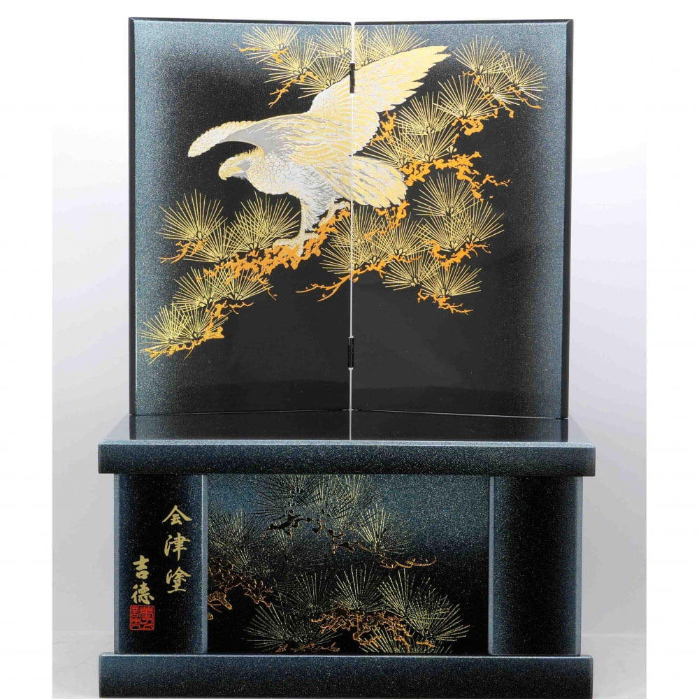 トイザらス・ベビーザらスがおすすめする『兜収納飾り「金彩松鷹青黒ぼかし会津塗」』の五月人形です。