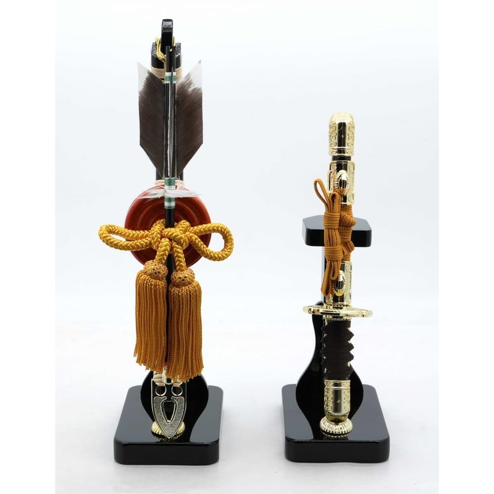 <セット内容>兜1点、弓1点、太刀1点、飾り台1点、木札1点