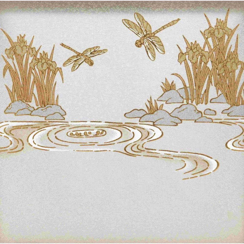 ケースの背景に金彩で蜻蛉(トンボ)と菖蒲を描きました。