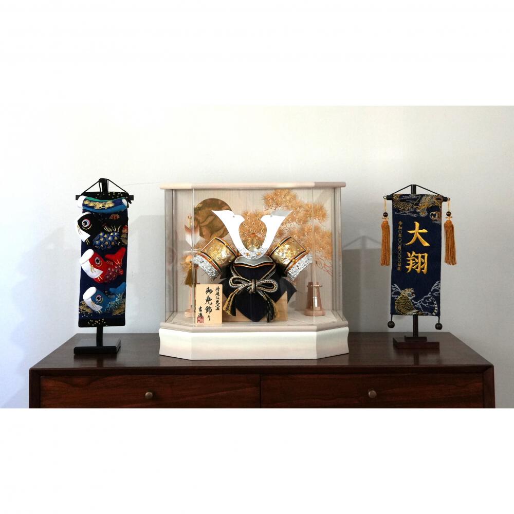 お子様のお名前と生年月日の入った名前旗(別売り)と合わせてお飾りいただければ、お節句のお祝いがより華やかになります。