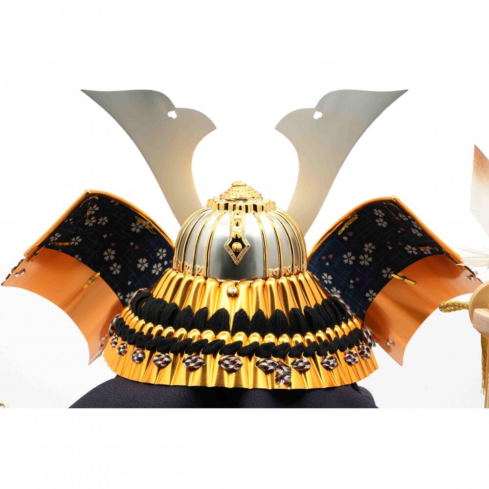 ゴールドとシルバーを基調とした兜を流行りのグレージュ色のアクリルケースにセットしました。