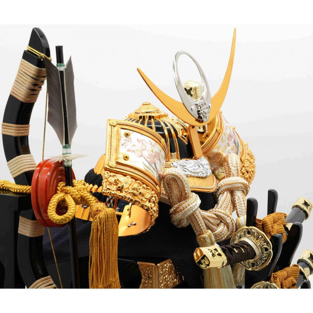 <セット内容>兜1点、アクリルケース1点、弓1点、太刀1点、前大小二本太刀、木札1点