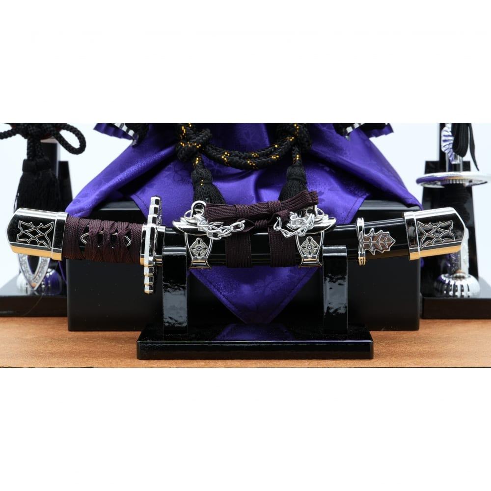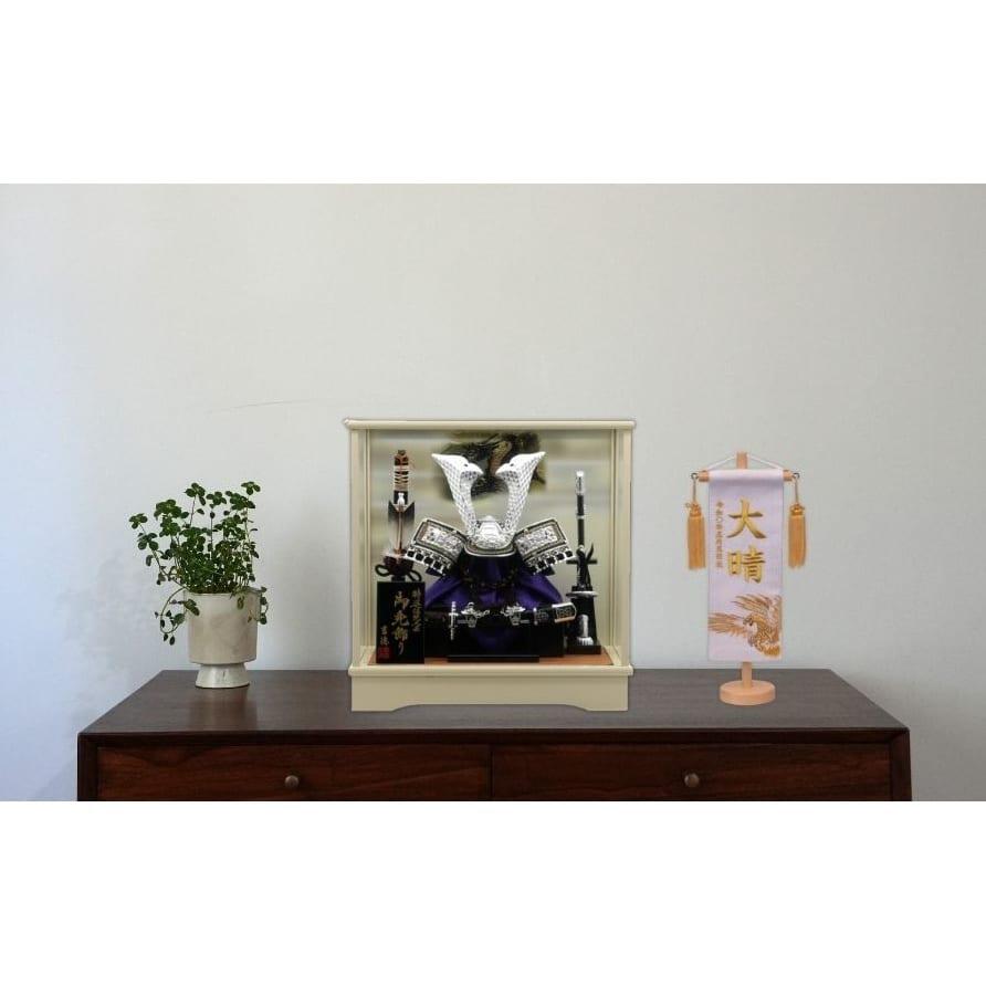 <セット内容>兜1点、ガラスケース1点、弓1点、太刀1点、前一本太刀1点、木札1点