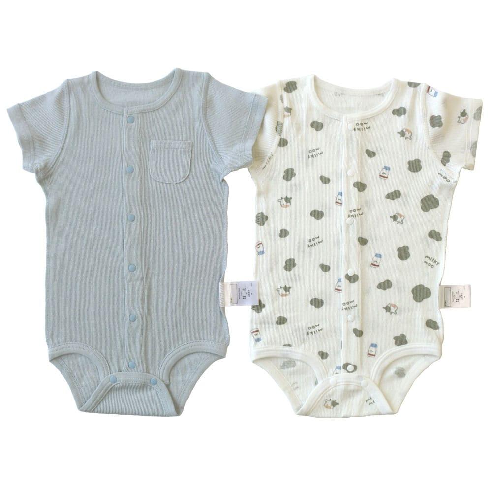 半袖前開きロンパース肌着 2枚組 テレコ ウシ(ブルー×70cm) ベビーザらス限定