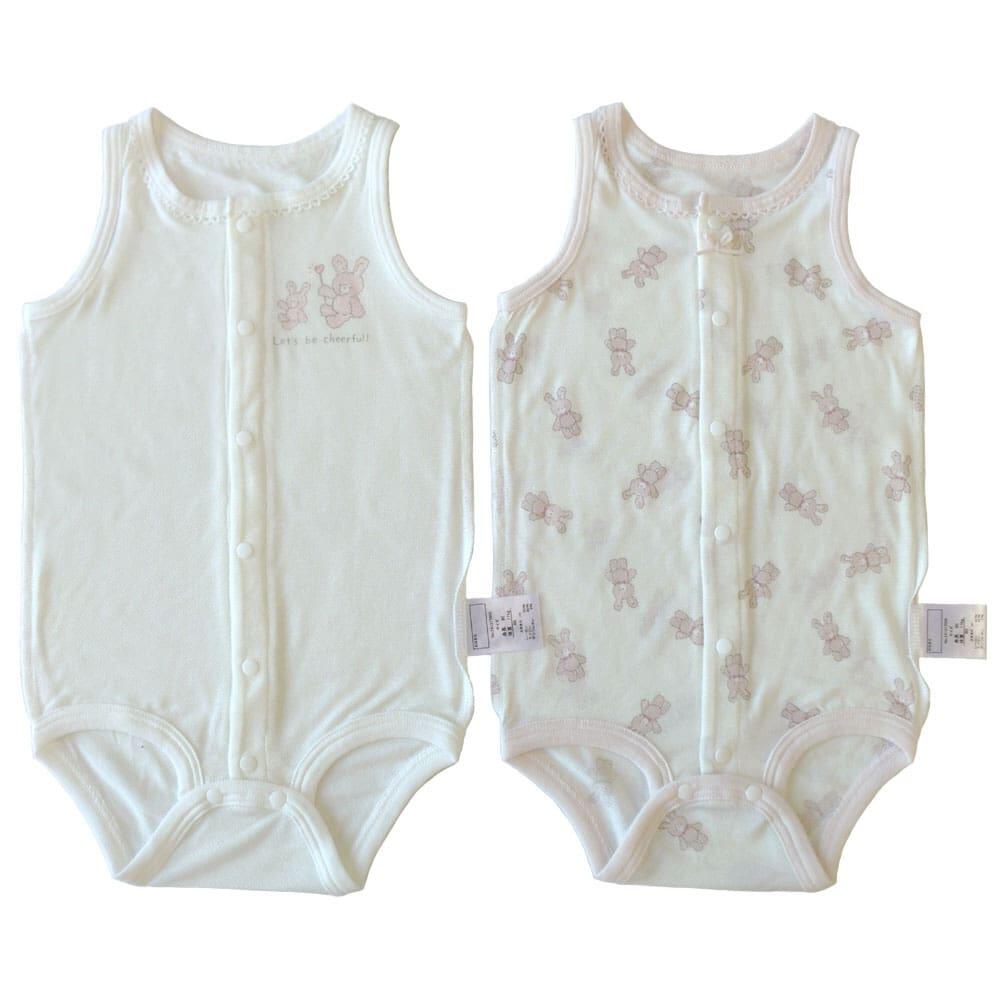 袖無し前開きロンパース肌着 2枚組 クール うさぎ(ピンク×70cm) ベビーザらス限定