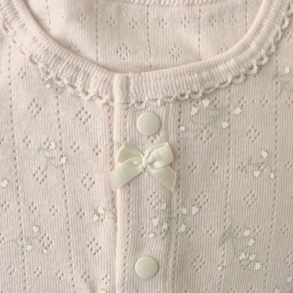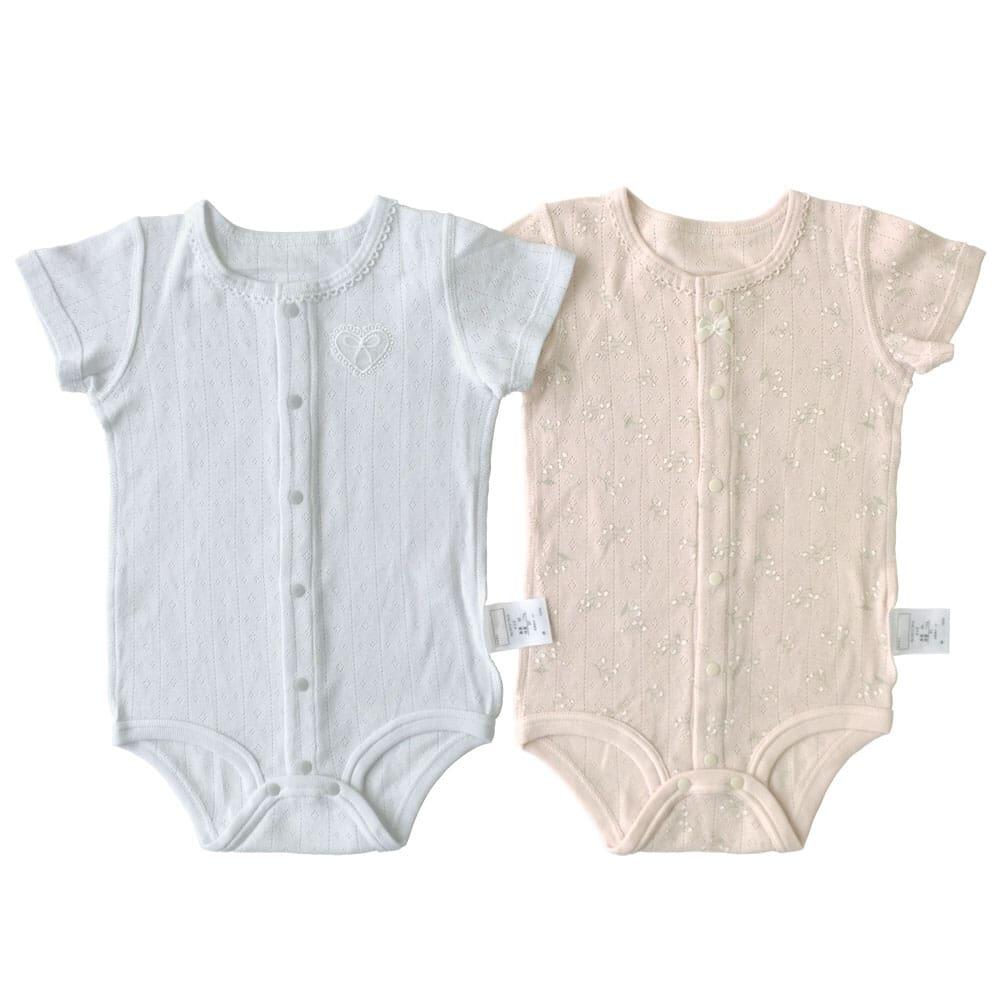 半袖前開きロンパース肌着 2枚組 おめかしパターンメッシュ 花(グレー×70cm) ベビーザらス限定