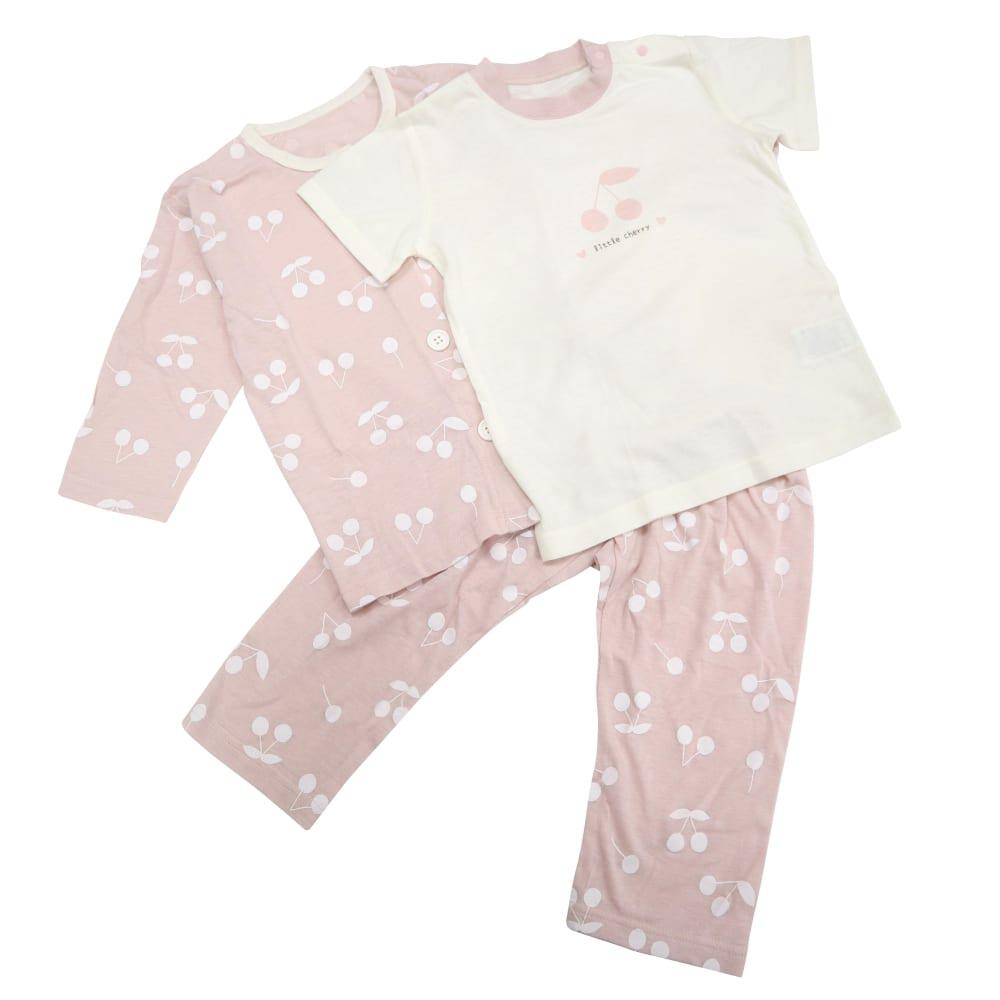 女の子らしいチェリー・小花・ハートの総柄がかわいいデザインです。