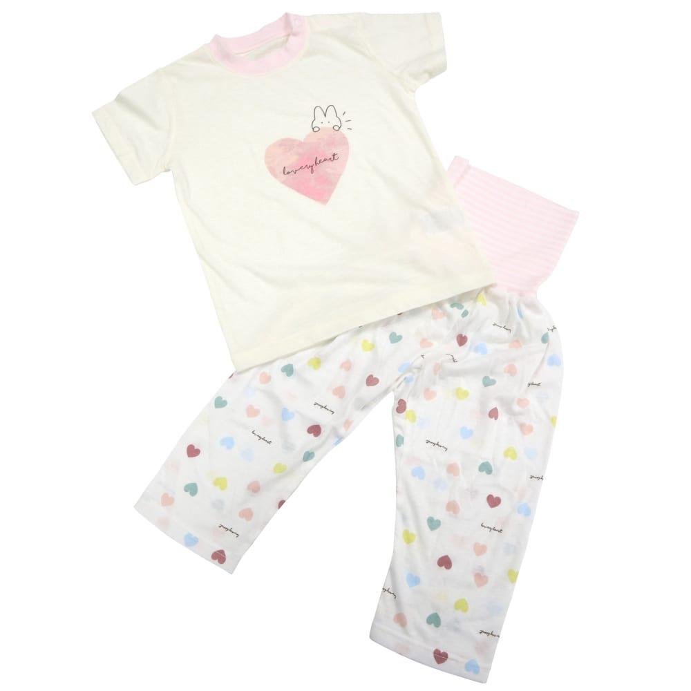 長袖前開きパジャマ+半袖Tシャツセット 腹巻付き ハート柄(ハート×80cm) ベビーザらス限定
