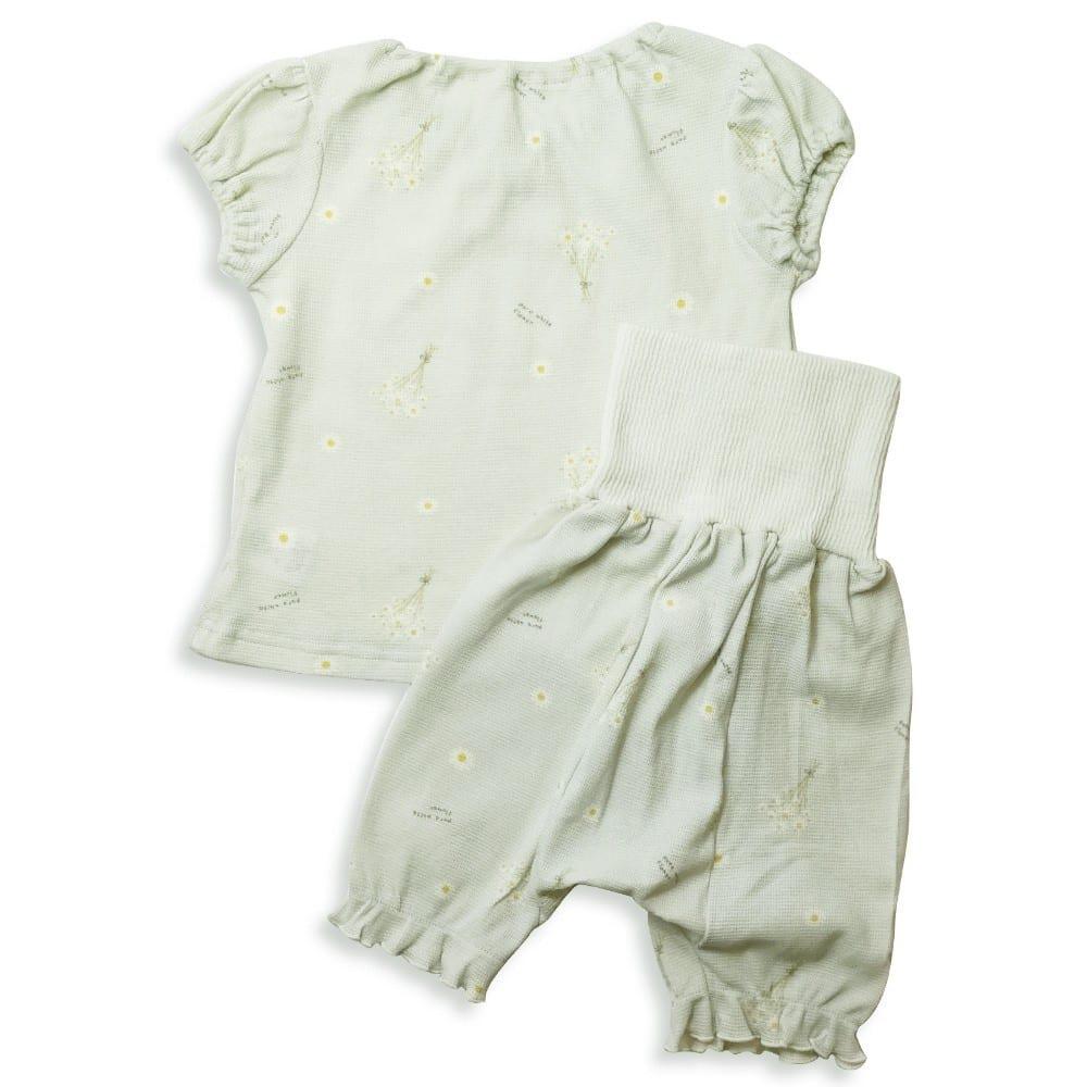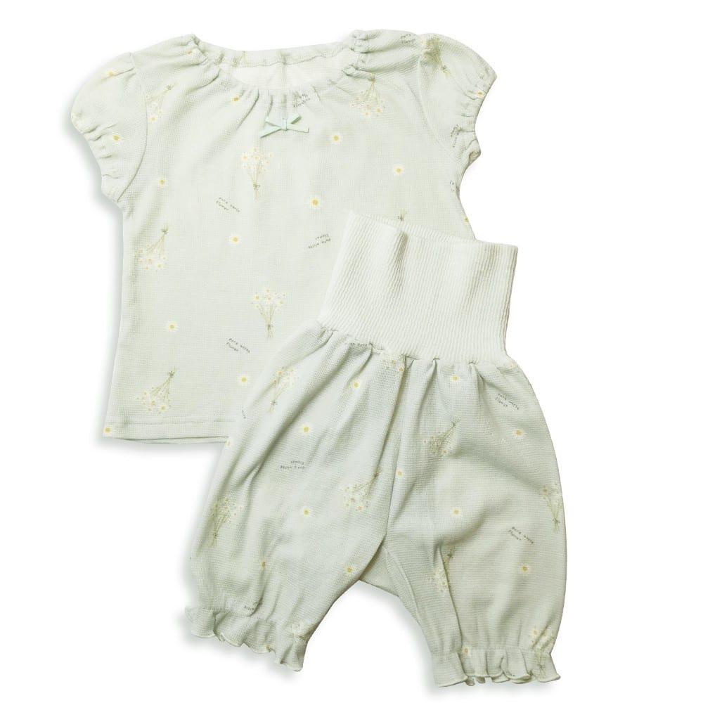 <仕様>上衣:リボン付きスモック型 パンツ: 腹巻付き5分丈パンツ