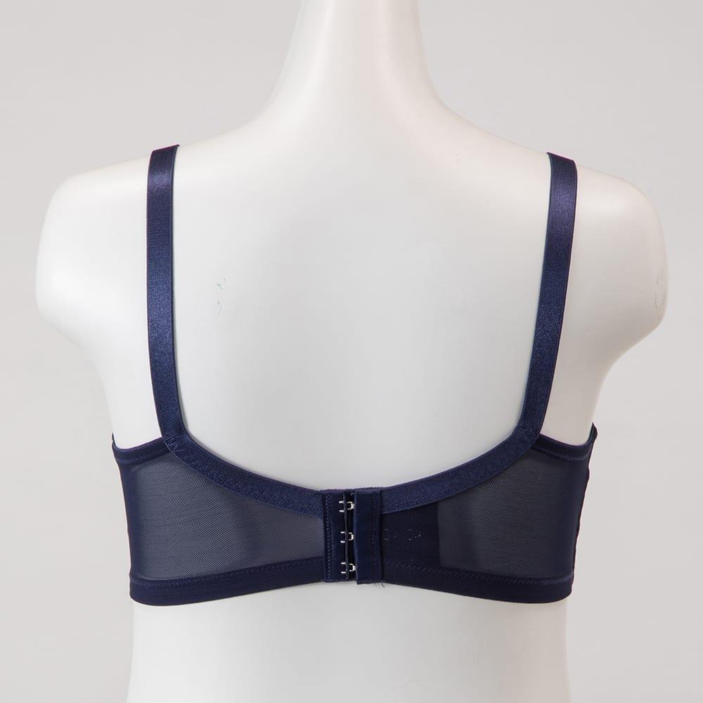 脇高で、産前産後に気になる胸周りの肉を押さえてくれます。後のフックは安定感のある幅広タイプで、4段階にアンダー調節が可能。