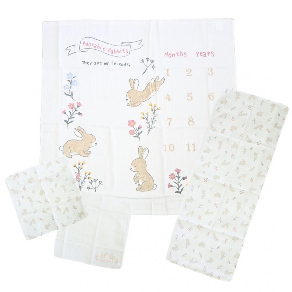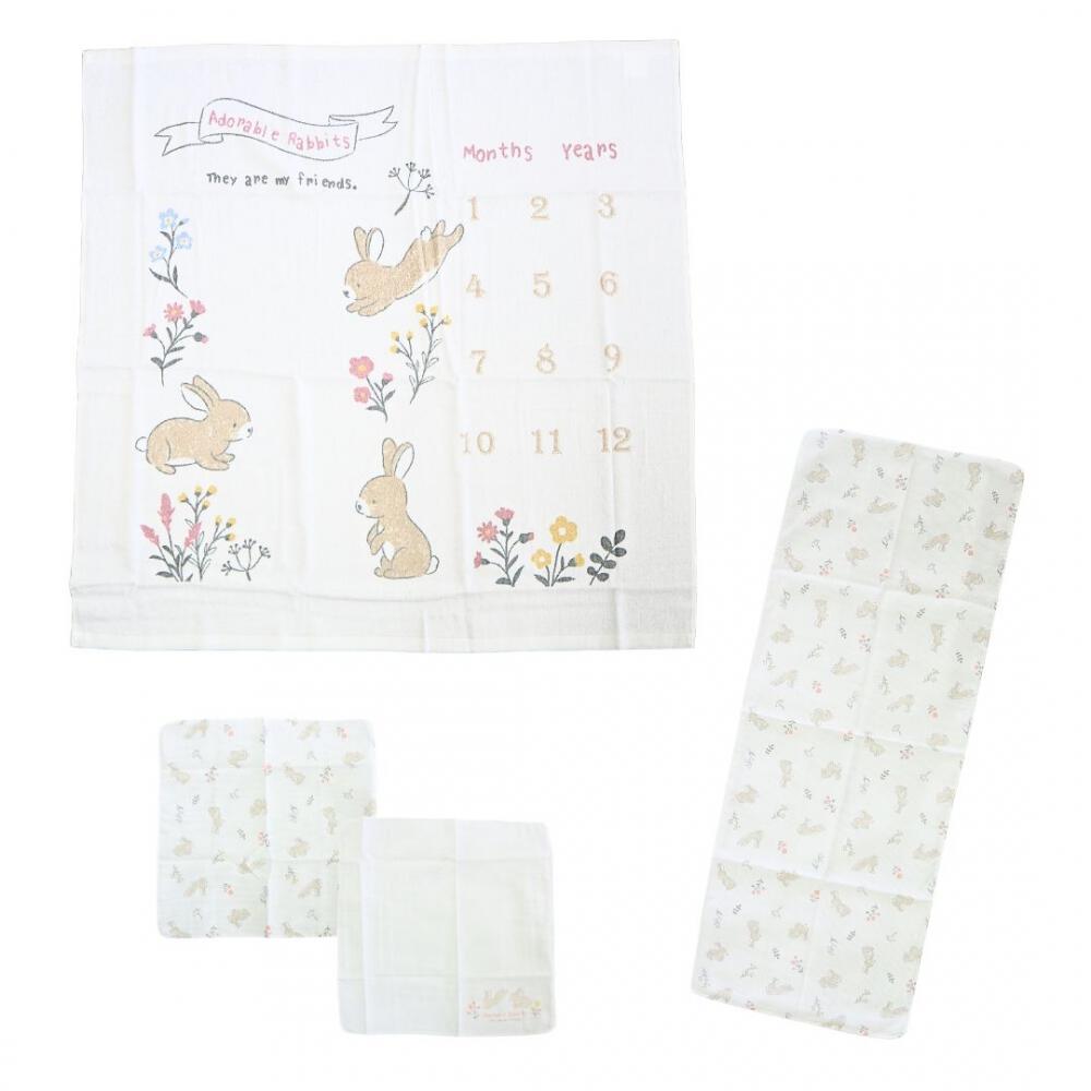 タオル&ガーゼ浴用4点セットうさぎ柄(うさぎ×フリー)ベビーザらス限定