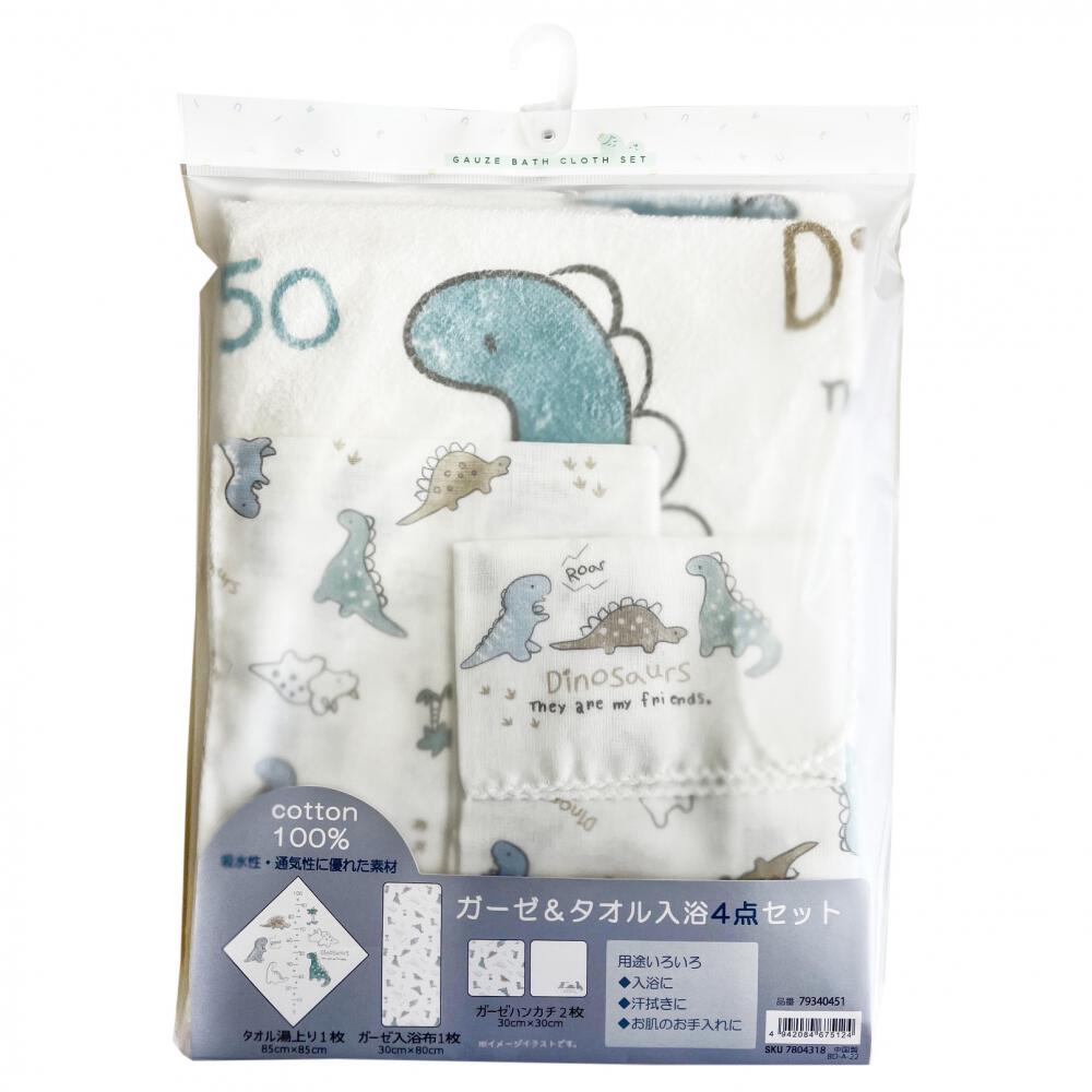 タオル&ガーゼ浴用4点セット恐竜柄(恐竜×フリー)ベビーザらス限定