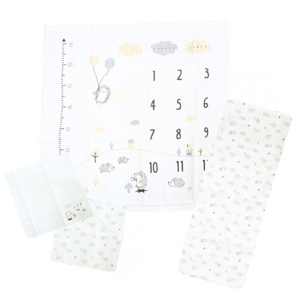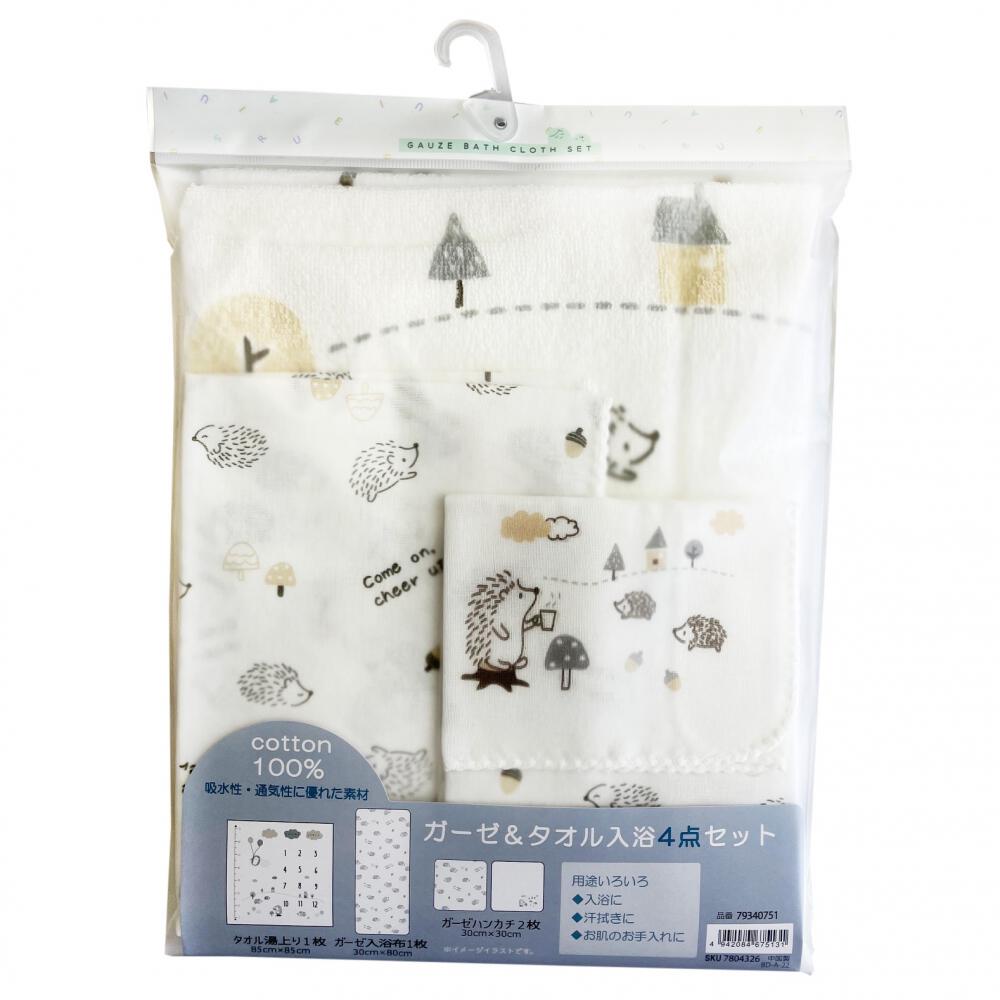 タオル&ガーゼ浴用4点セットはりねずみ柄(はりねずみ×フリー)ベビーザらス限定
