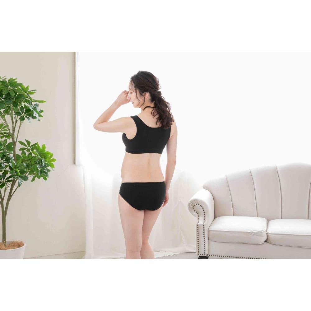 綿100%肌にやさしいリブハーフトップ(ブラック×L)
