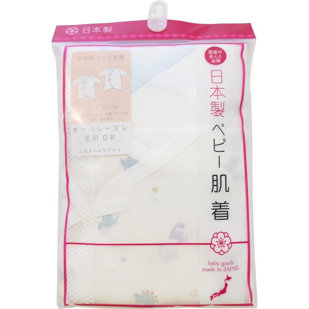 日本製 フライスコンビ肌着 2枚組 恐竜柄(ブルー×50-60cm) ベビーザらス限定