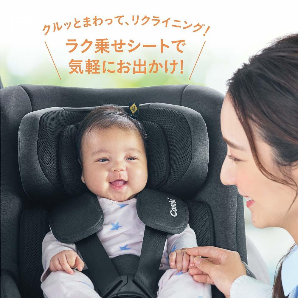 乗せ降ろし時でも5段階リクライニングができる、ラク乗せコンパクトチャイルドシート。