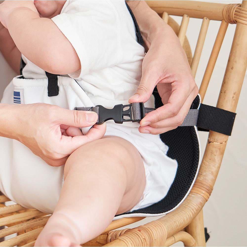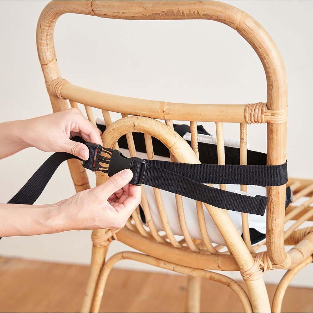 外出先のレストランや公園のベンチ、家のイスに取り付けて転がり落ちないようにする安全補助ベルト。