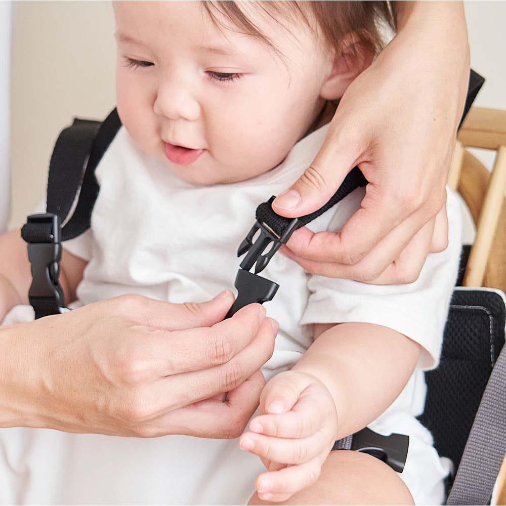 お母さんの腰に装着すれば、お母さんのひざの上でも安心してお食事が出来ます。