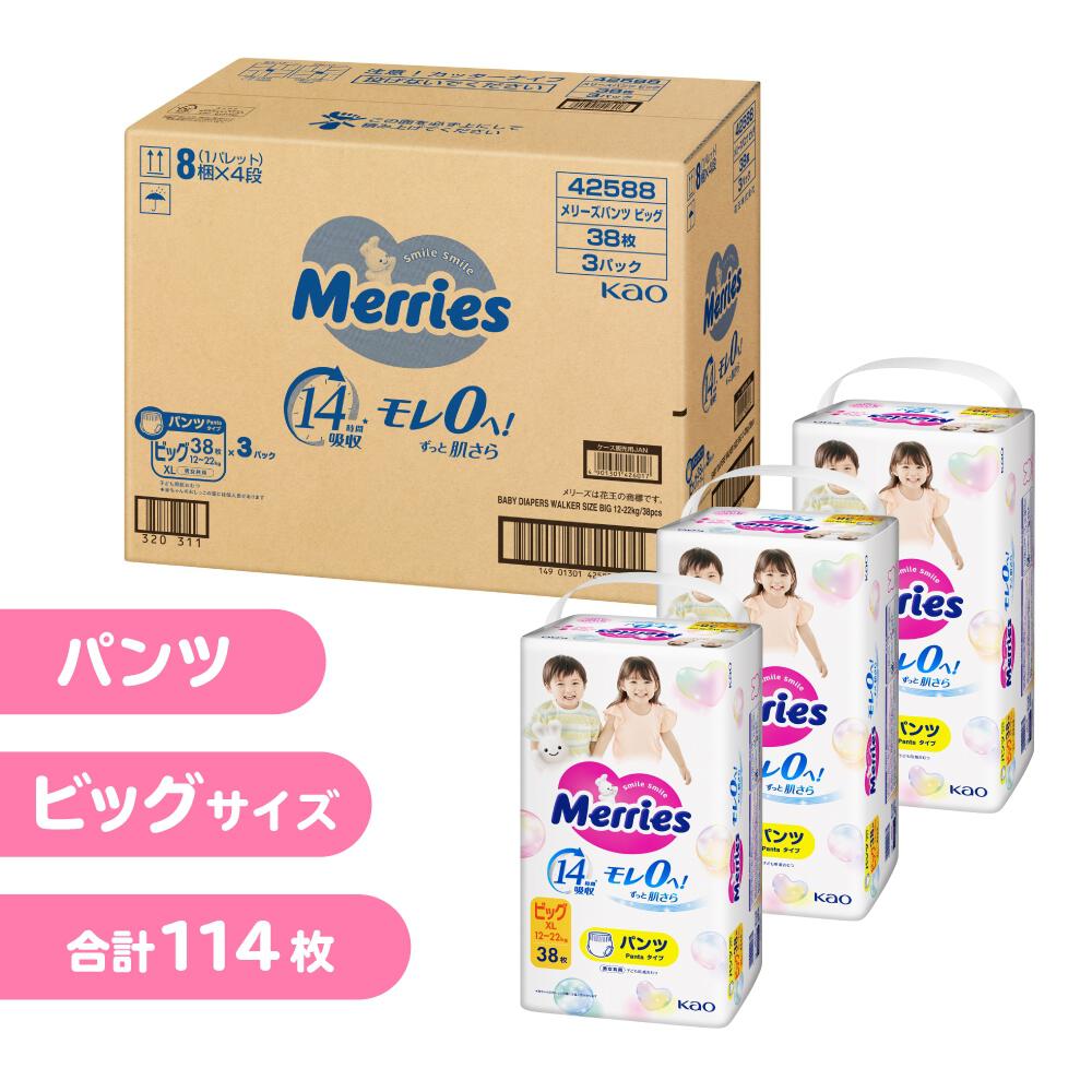 *メリーズ エアスルー ビッグ(12~22kg) 114枚入り(38枚×3パック) 箱入り 【花王 パンツタイプ おむつ】