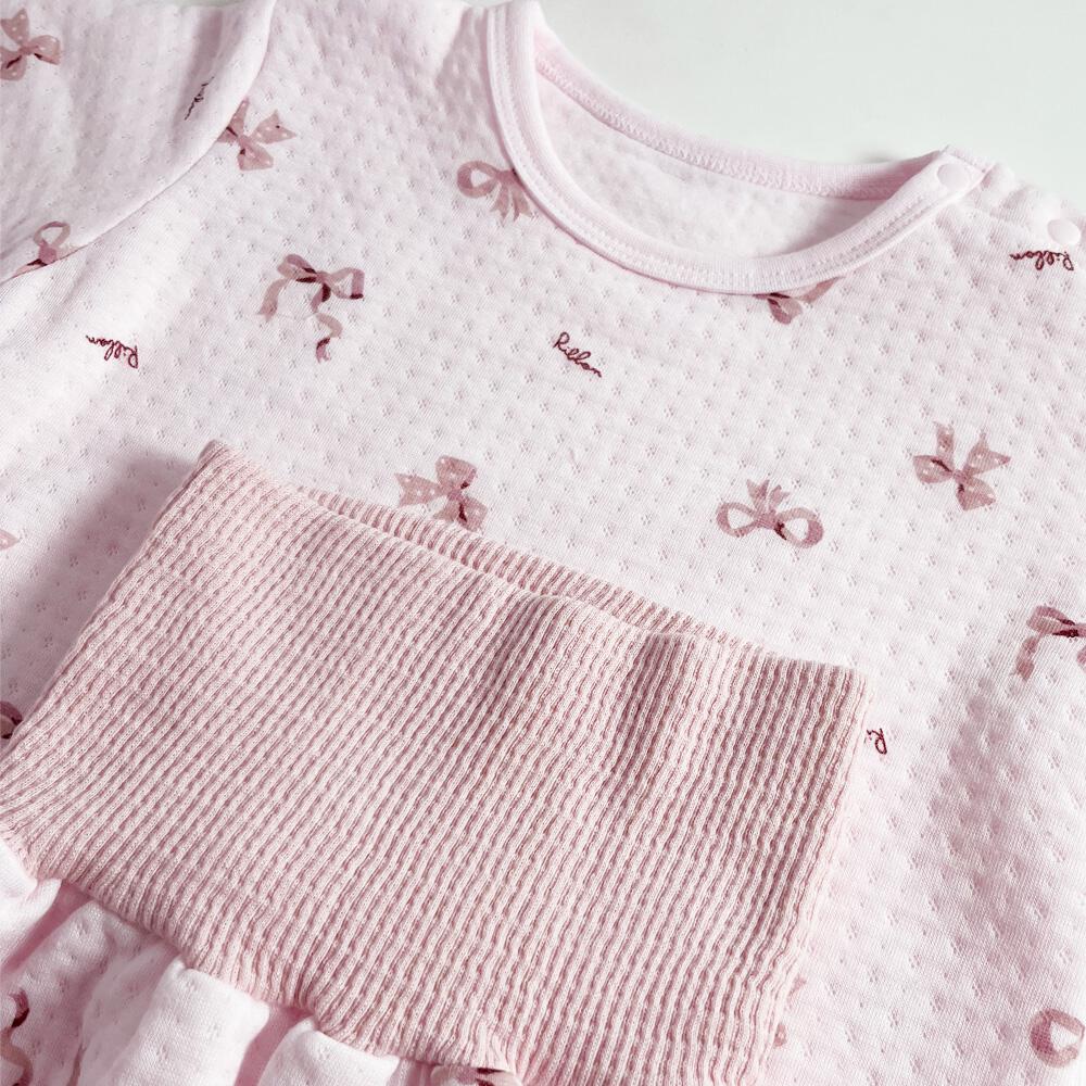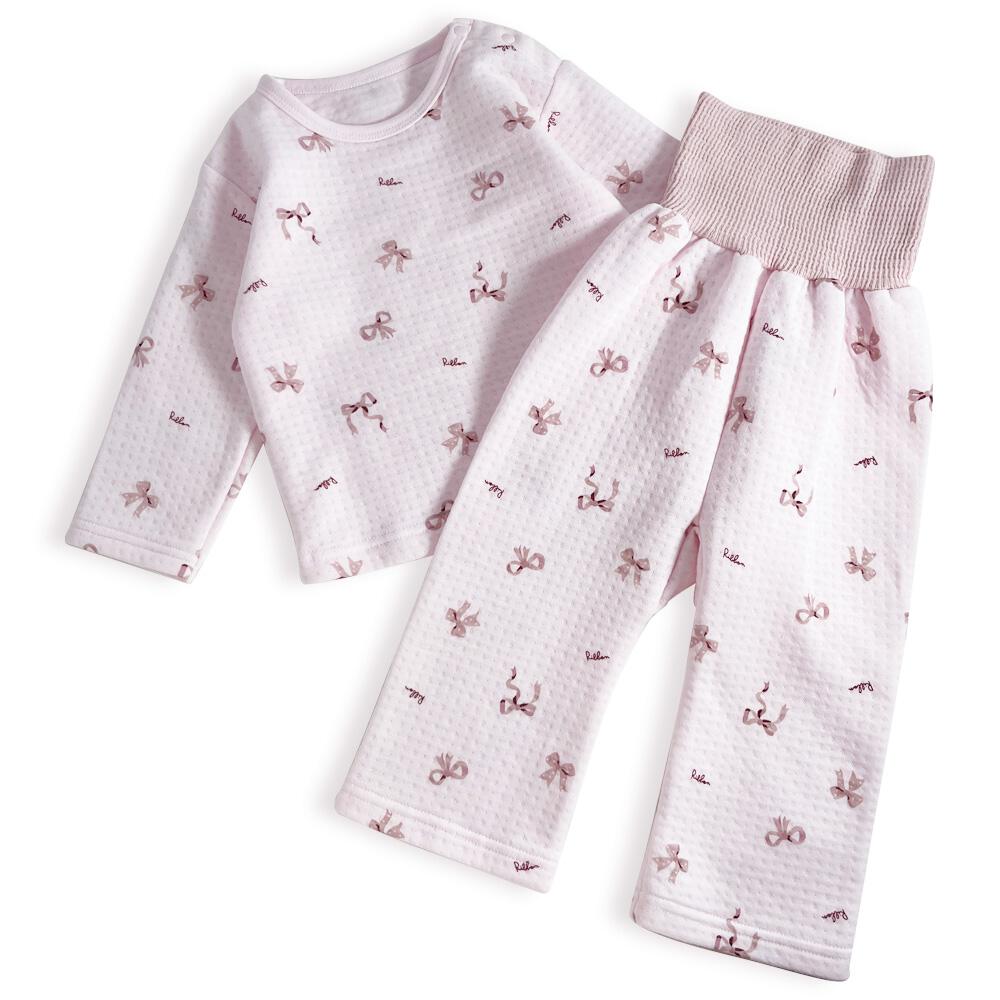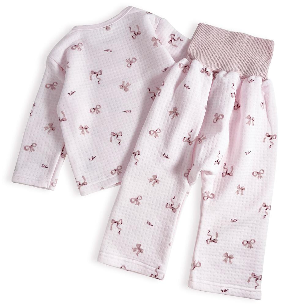 長袖腹巻付きパジャマ エアニット リボン柄(リボン×80cm)