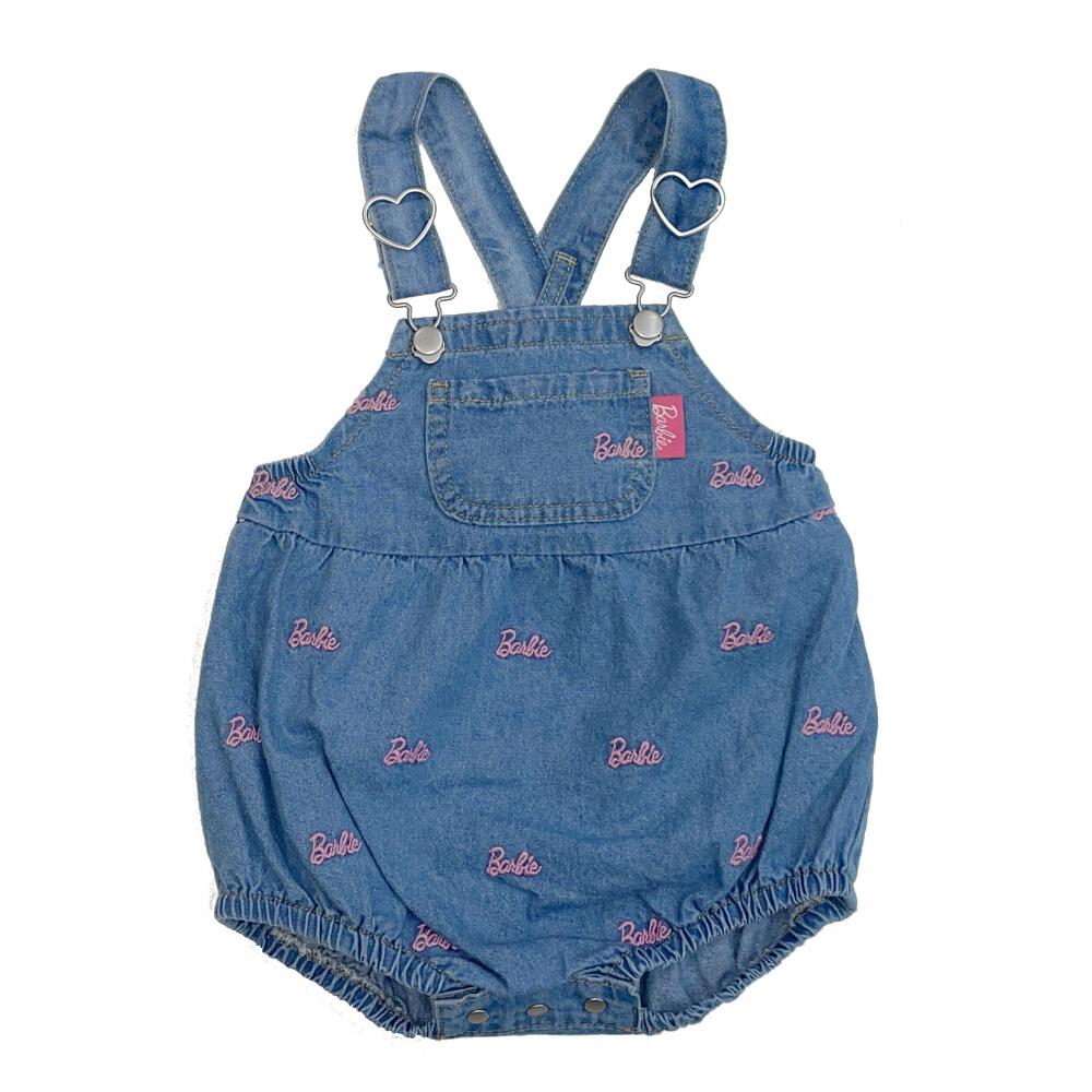 Barbie バービー ロゴ刺繍デニムサロペットロンパース(サックス×70-80cm)