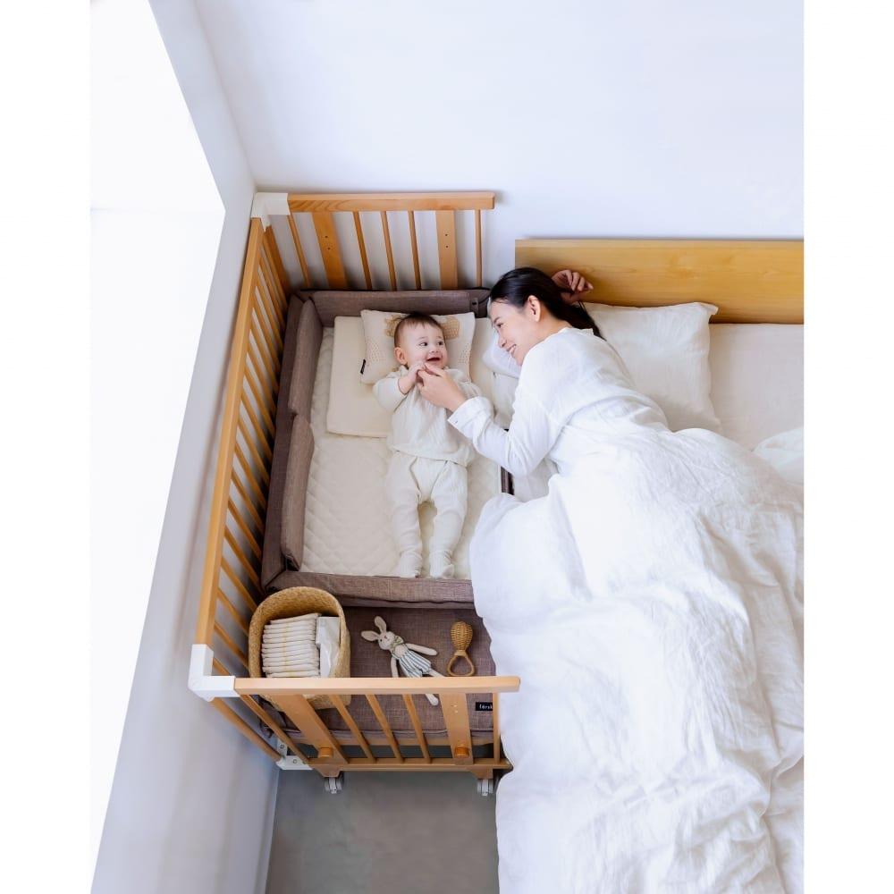・クリエイティブコットは高さ28段階調節が可能、あらゆる大人のベッドで添い寝ができます。赤ちゃんと添い寝をすることで、親子の絆を深めることができます。