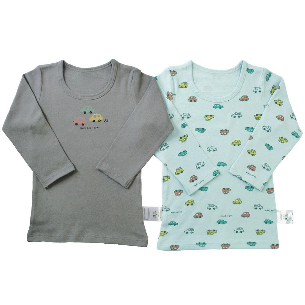 長袖シャツ肌着2枚組 スムス 車(グレー×90cm)